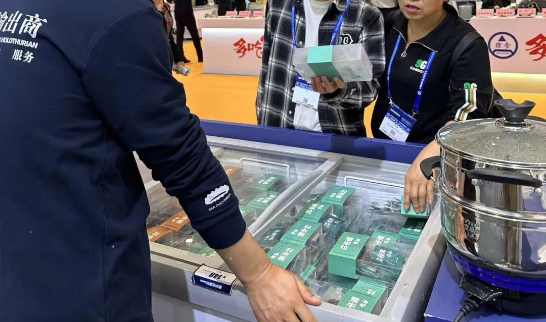 此次展會(huì)上,達(dá)蓮公司推出產(chǎn)品涵蓋了遼參原料系列:鹽漬遼參、凍煮料;即食遼參系列涵蓋了速凍即食遼參、高壓即食遼參、美味高壓即食遼參、黃金卵即食遼參;淡干遼參;新產(chǎn)品整半拉-入味遼參等產(chǎn)品。